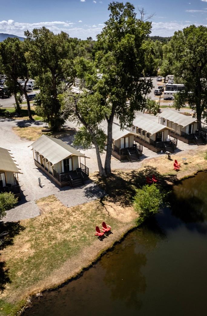 Enjoy RV camping or the comfort of luxury glamping tents in a lush setting on the Pine River, between Durango and Pagosa Springs.