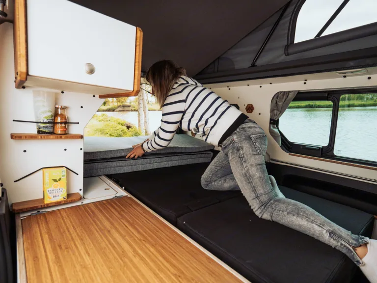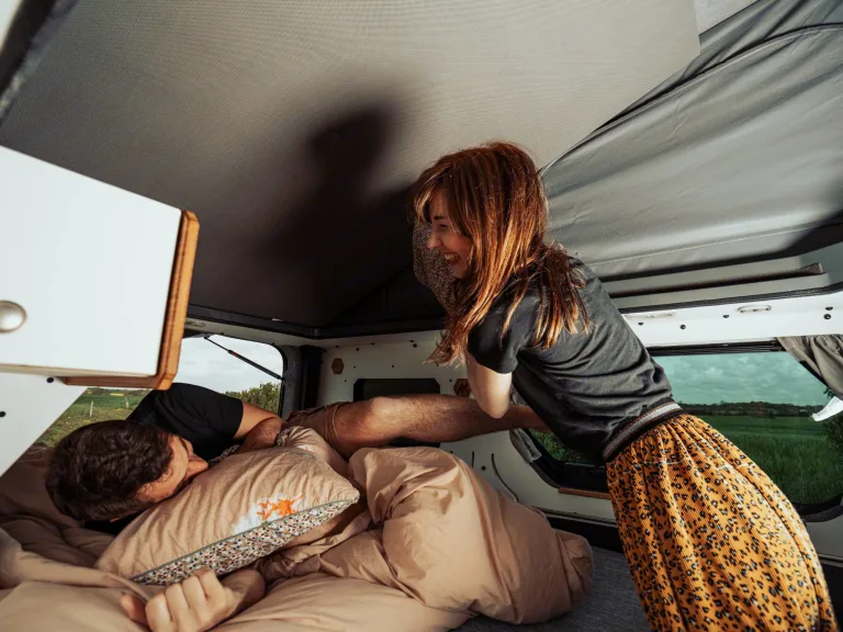Canterbury Renault accueille 4 personnes et propose deux espaces de couchages, un sur la banquette (135 cm) et l'autre dans le toit relevable (125 cm).Equipé d'une cuisine, avec un réfrigérateur 30L, un réchaud amovible et un évier avec une réserve d'eau de 36 litres d'eau chaude, le Canterbury est avant tout un van de confort.Il dispose également de beaucoup de rangements et d'un large coffre afin de ranger vos affaires et vos valises.Facile à manier, le Canterbury est neuf de l'année et est révisé avant chaque départ !Sa différence avec l'Otago? Plus de place, une personne de plus et beaucoup plus d'options !