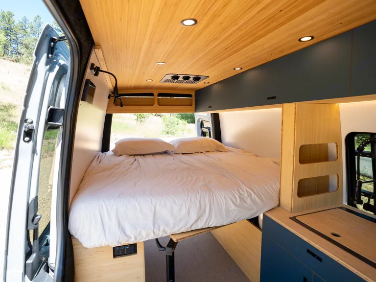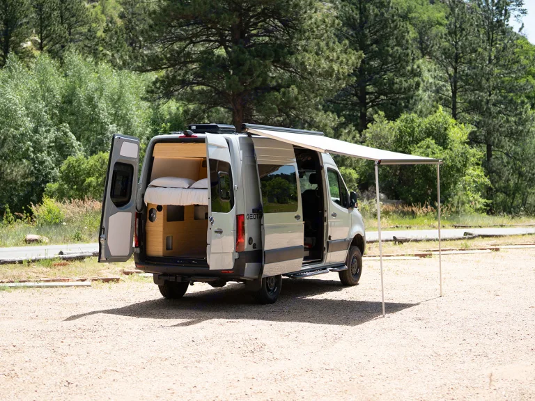 Meet "Vanis" our 2025 Geotrek Albatross Flatiron, the ultimate balance of rugged capability and modern comfort. Whether you’re exploring Colorado’s backroads, heading to national parks, or taking a cross-country trip, this adventure-ready camper van has everything you need.All-Wheel Drive – go confidently on mountain passes, gravel roads, and snowy conditions.Off-Grid Power – solar panels, lithium battery bank, and inverter keep you charged anywhere.Fully Equipped Kitchen – fridge, stove, sink, and plenty of storage for cooking on the road.Spacious Interior – sleeps 2 comfortably with a king sized bed and smart storage throughout.Comfort Upgrades – climate control, hot water, outdoor shower, and swivel captain’s chairs.Adventure-Ready Gear Storage – plenty of room for bikes, skis, or camping gear.Perfect for couples or solo travelers who want to experience van life with comfort and confidence. With AWD, solar, and a thoughtfully designed interior, this Geotrek Albatross is ready for any trip — from weekend escapes to extended adventures.What's included• Pots/Pans, Plates/Cutlery, Basic cooking needs
