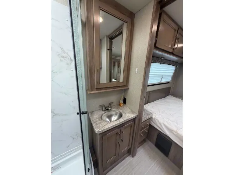 Sleeps 5 (queen bed, twin bunks, full over-cab bed)Full kitchen w/ stovetop, oven, microwave, fridge & freezerPrivate bathroom with toilet & showerA/C & heatStorage space galoreCookware, dishes, utensils, RV-safe toilet paper & paper towelsCoffee maker included (because, obviously)Enhance Your Experience (Optional Add-Ons):