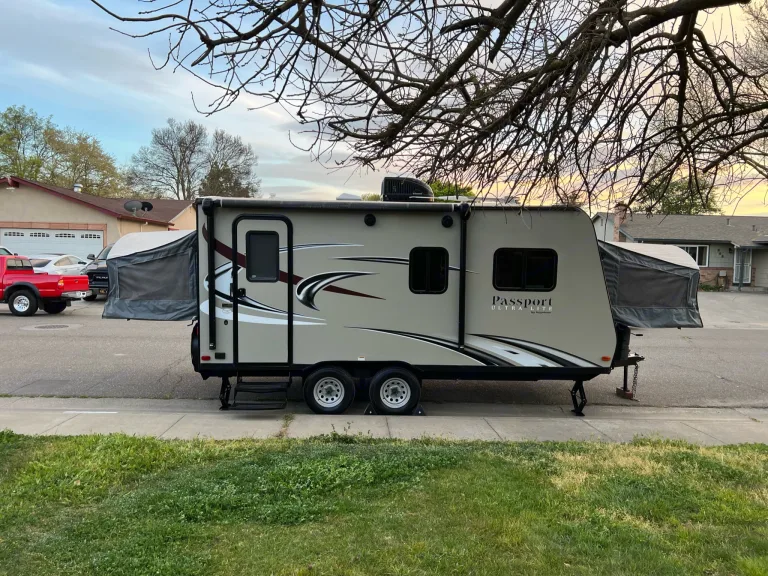 Lightweight 20' Hybrid RV expands out to 25', easy to tow RV with room for up to 8 (but most comfortable for 5). This rig weighs 3600 lbs, with a hitch weight of 410 lbs. Includes weight distribution hitch. Great for SUVs and half ton pickups!What's includedFeatures 2 queen fold out mattresses, a futon conversion mattress, and a dinette sleeper conversion. (Pillows and linens not provided)Fully equipped with dual kitchen sinks, 3 burner stove, oven, microwave, freezer/refrigerator, flat screen tv, DVD player, bluetooth, AM/FM Radio, AC/heater. Power retractable awning is great for hanging out outside.Kitchen amenities include: frying pan, a large and medium pot, a water kettle, bottle opener, can opener, forks/spoons/butter knives, kitchen knives, cooking utensils, mixing bowls, cutting board, kitchen towels, bowls, cups, plates, and cool camping mugs!Toilet paper, dish soap, and hand soap included!Other things to noteNo petsNo smoking of any kind (electronic or conventional).No festivals.