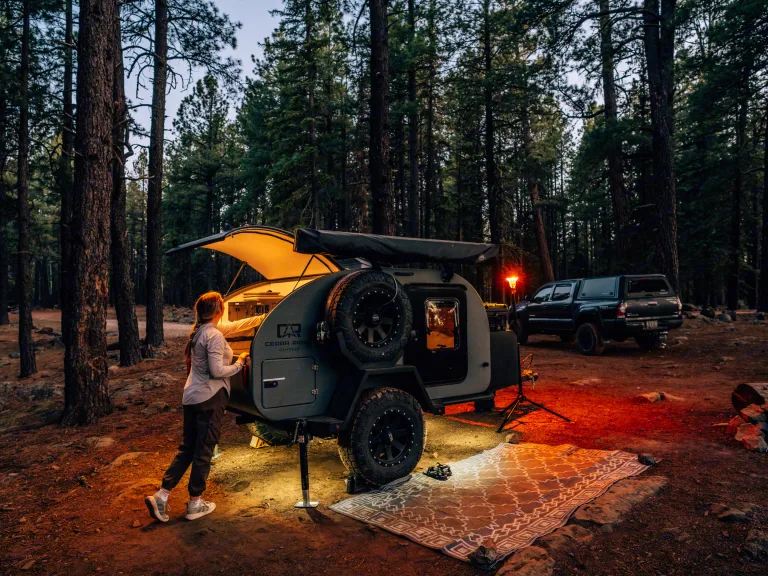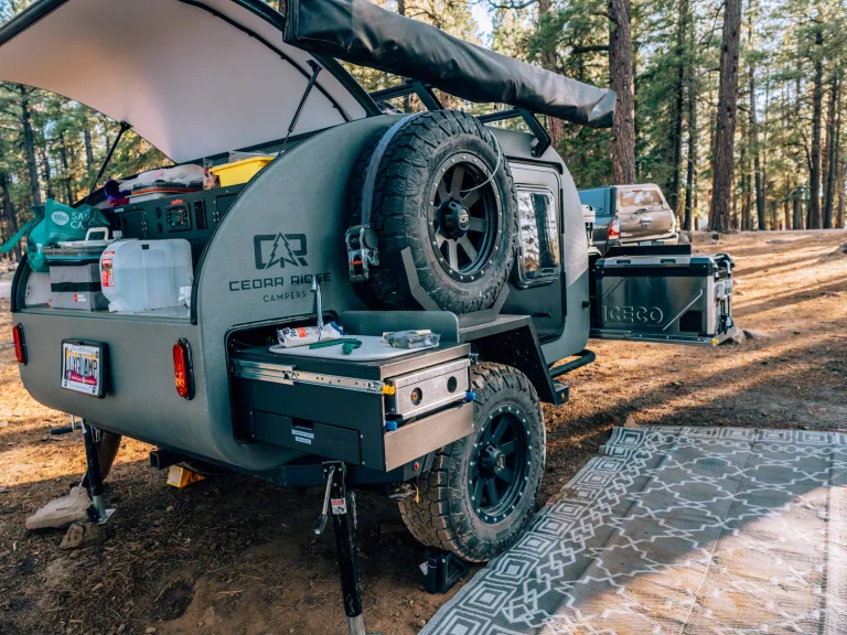 Pick-Up Location: Conveniently located in downtown Flagstaff, Arizona. Or have us deliver & set-up the trailer for you!Experience the thrill of the outdoors without sacrificing comfort. Rent the Cedar Ridge Vega 2.0 and make unforgettable memories on your next journey! Contact us for booking and additional information.What's included• What’s included: