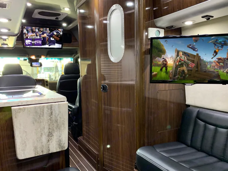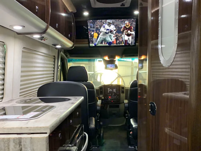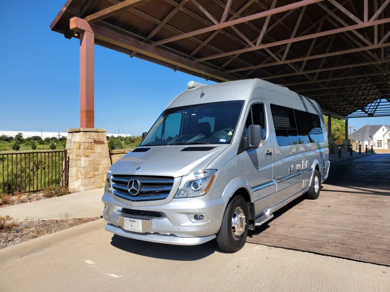 Travel in this 9 seat beautiful, luxury RV that is ready to accommodate a family taking a vacation to their favorite spot or venturing out to a new place on the bucket list. It's also great for tailgating right before your favorite team takes the field. It has everything you need to make it an enjoyable and memorable occasion. Rent it for the weekend, or for a few weeks. It has a queen size bed, 2 Smart TVs that can operate independently of each other, 1 Blu-Ray DVD and 1 in-dash DVD player with TV and many other amenities including a Bluetooth capable radio with navigation. This easy-to-drive luxurious ride combines the performance of Mercedes Benz with the camping innovations of Airstream...all in a fully self-contained Class B motorhome...and you don't need a special license to drive it. You will feel safe, confident and in control with parking assist, collision prevention and lane assist. Diesel fuel economy is typically in the upper teens, low 20s. Enjoy cold drinks from the refrigerator while watching a movie on DVD, and the kiddos are gaming on the other flat-screen TV. Enjoy plush ultra-leather chairs, galley kitchen equipped with propane burners, convection microwave, refrigerator and sink. Rear sofa converts to a queen size bed at the push of a button. You’ll also enjoy a full bathroom with European shower. This van provides the ultimate tailgating experience with outside handy fuel lines to connect a propane grill, electrical outlets for entertainment accessories and a LED porch light. You won't be disappointed!What's included: