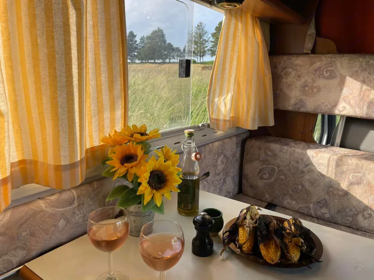 Rimor stands out with its retro aesthetic, enveloping you in an atmosphere of bygone elegance. From the cozy interiors to the spacious living areas, every aspect of Rimor has been thoughtfully considered to ensure your journey is not only stylish but supremely comfortable. The motorhome features a well-equipped kitchen, convertible sofas for up to 4 people, and large windows to let you soak in the views.Ready for Adventure