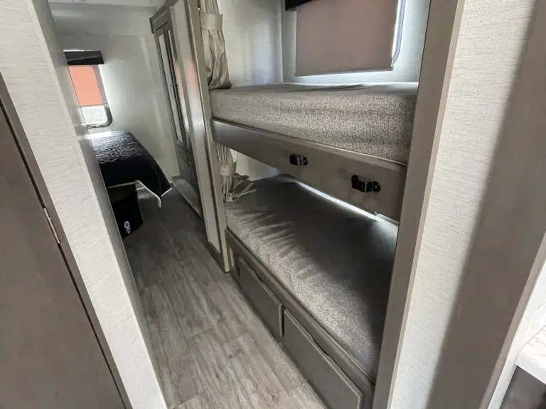 This RV has everything you need for great getaway. It’s sleeps 9 depending on sleeping arrangements. Master has queen bed, Dinning table converts into bed for the kiddos, Couch converts into double, Queen over cab, 1 TV, Inside stocked with silverware, plates, cups, basic pots, pans and cookware. Equipped with automatic self leveling jacks. Outdoor lighting with big awning. Will need to pack pillows, sheets, blankets, etc. It’s ready to hit the road!