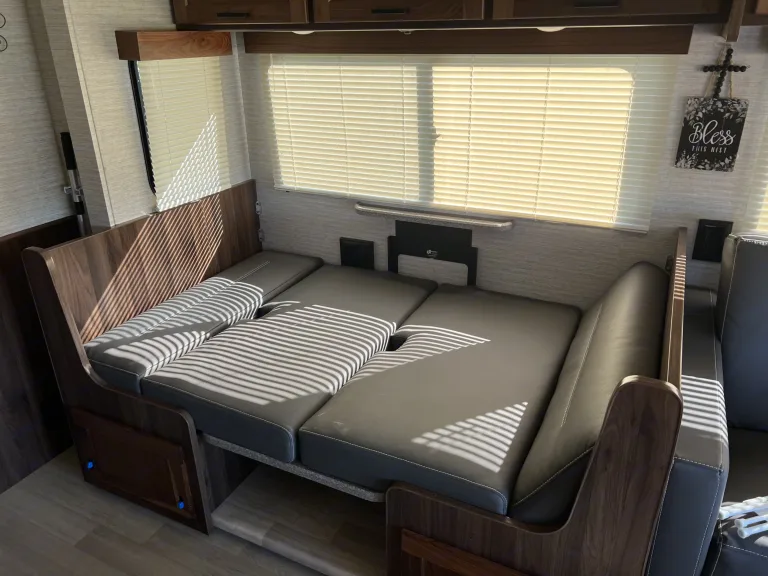 Our little home on wheels sleeps 3 adults comfortably or 2 adults and 2 children. The bedroom boasts a king size bed, large closet and wardrobe for all your clothes. For entertainment there is a tv in the living area, bedroom and an outdoor tv. There is a Blackstone griddle with propane tank and Solo Stove for your campfire. "Winnie" comes turnkey with plates, utensils, pots and pans, coffee maker, toaster and much more. All you have to do is pick your paradise location within 100 miles of Gulf Breeze/Pensacola, FL and we will deliver and setup your adventure. No fuel charges! Let us get our rig to your destination and enjoy your time with friends and family!What's included• Winnie is "turnkey", including bedding, kitchen utensils, plates, cups, pots and pans, coffee maker, bathroom towels, bodywash, shampoo, conditioner, Blackstone griddle with propane, Solo Stove for campfires, chairs.Recommendations-Camping on the Gulf, Emerald Coast Parkway West, Miramar Beach, FL