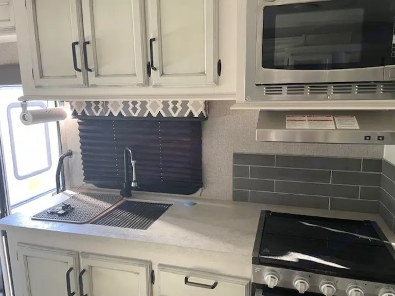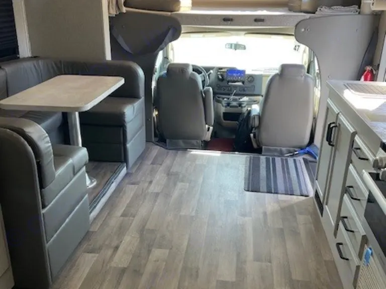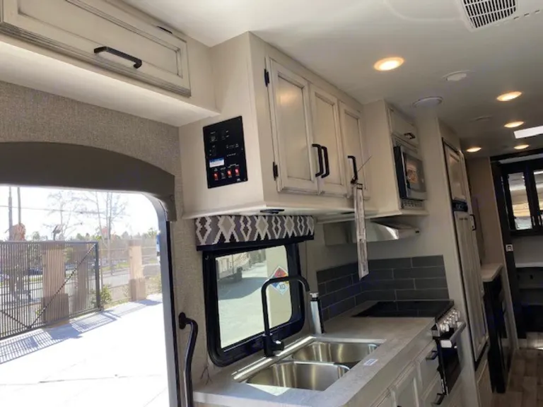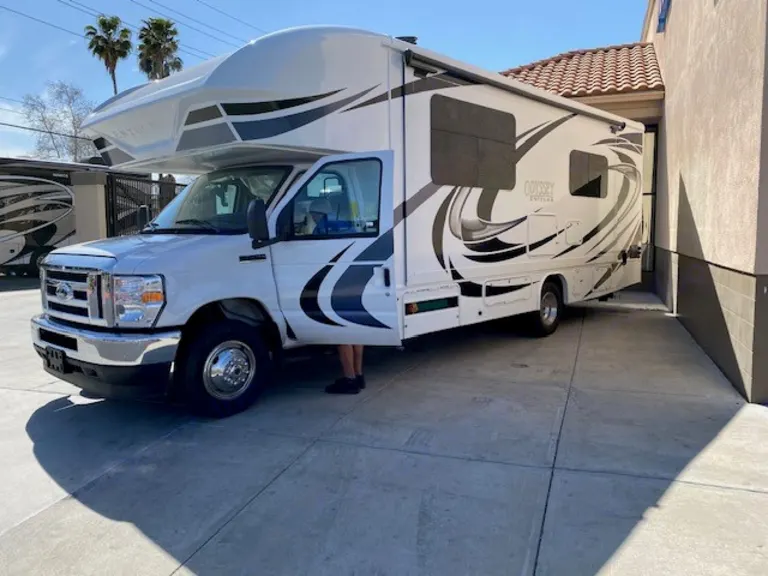The Entegra Odyssey Class C is great to drive with the Ford E-450 Econoline chassis that is equipped with E-Z Drive for an especially stabilized comfortable ride. With a panoramic front window, rear back-up, side view cameras and monitor. Makes this RV very comfortable and easy to drive. Exterior length is 29 feet, which gives you great space inside with the slide-out and the size makes it easier to maneuver in campgrounds. What's includedResidential-size microwave, 8 cu. Ft. flush-mount refrigerator, hardwood cabinet doors and drawers throughout and a 9-inch Sony® Infotainment system with Apple CarPlay and Android Auto.