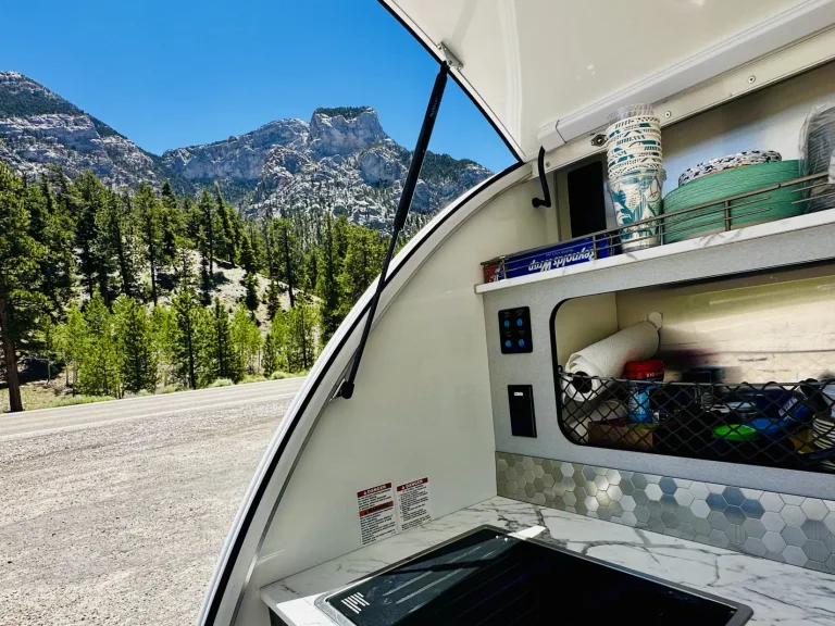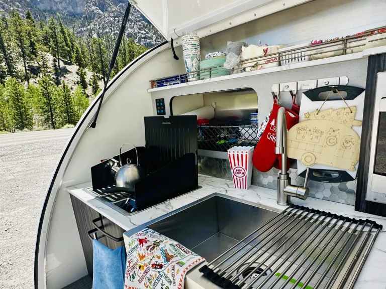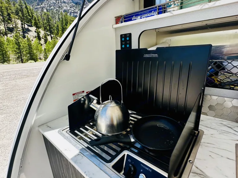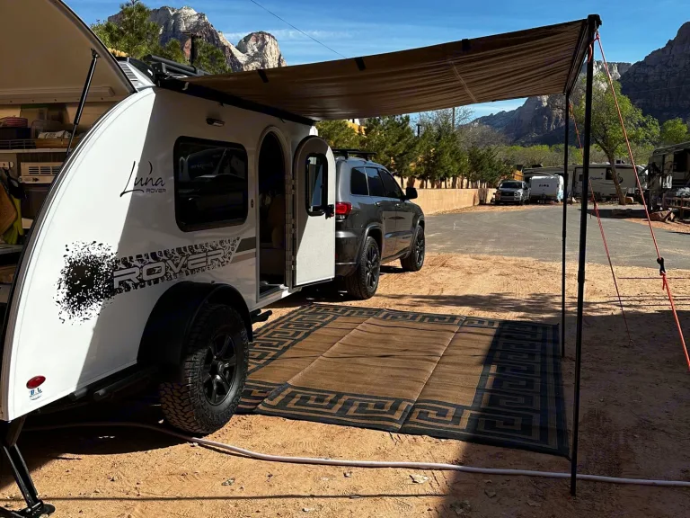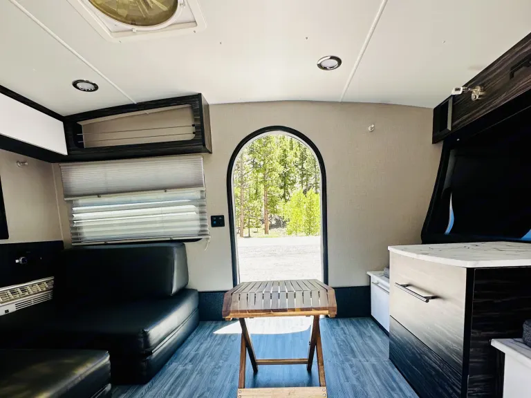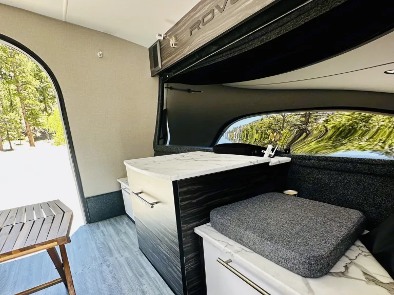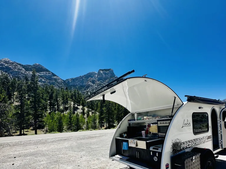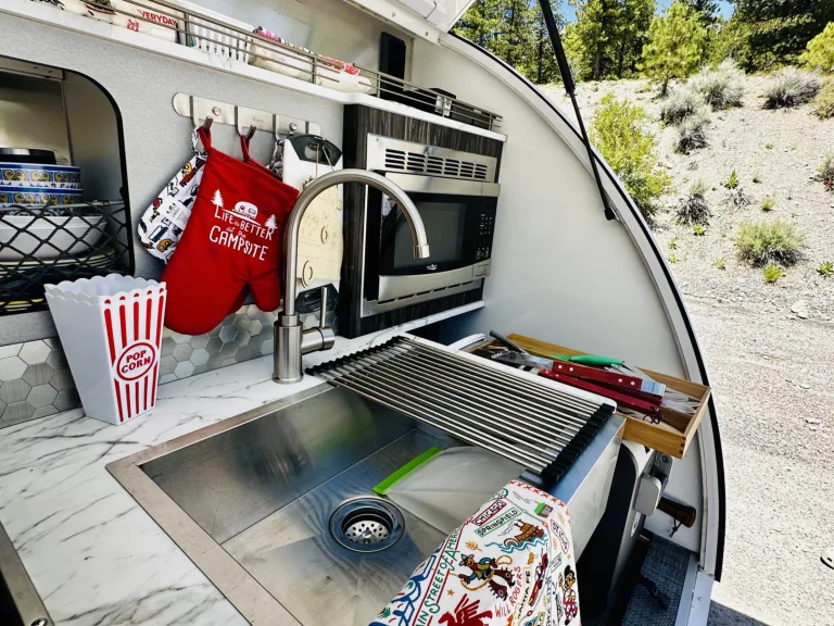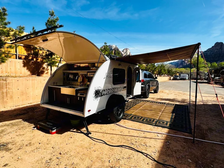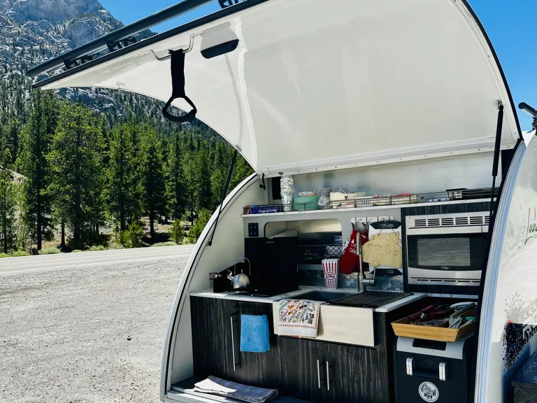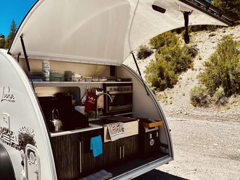 But what sets the Luna Rover apart from other campers is its innovative exterior features. The exterior Luxury kitchen gallery is perfect for outdoor cooking and dining, and the awning provides shade and shelter from the elements.Inside, you'll find all the amenities you need for a comfortable stay in the great outdoors. The queen-sized bed offers plenty of space for two, while the kitchen comes equipped with a sink, refrigerator, and microwave.The perfect Luna Rover Trailer for your next camping trip. Fits 2 adults very comfortable sits 4 people for a meal/talk, queen size bed . 30 Amp connection will get you all hooked up with the AC and TV .Whether you're embarking on a weekend camping trip or a cross-country adventure, the 2021 InTech RV Luna Rover Camper is the perfect home away from home. Book your rental today and get ready to hit the road in style!What's includedHIGHLIGHTSinTech RV's Luna is a teardrop camper that embodies the spirit of never-ending adventure.