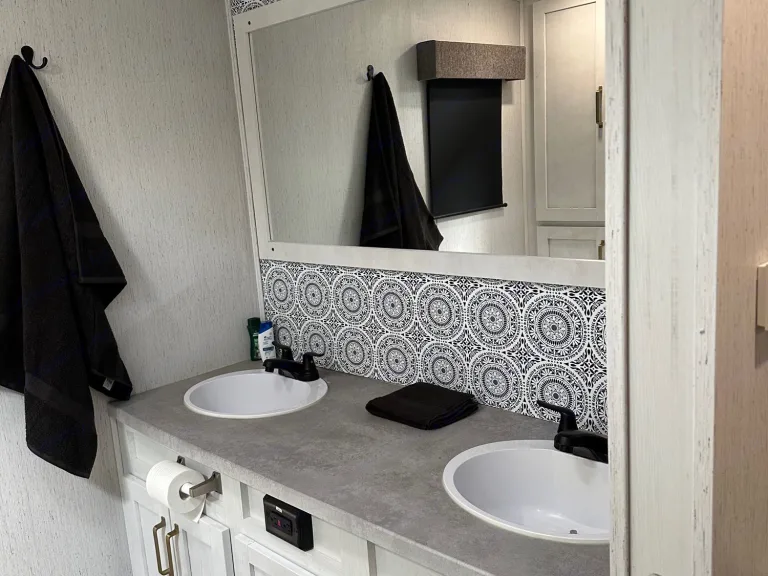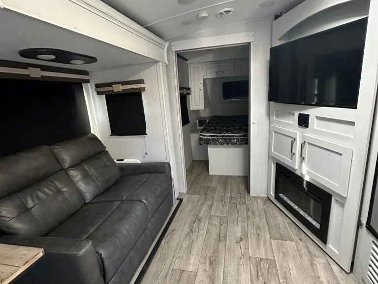 - toothpaste- Additional storage.Don’t worry about the weather! This comes with upgraded A/C for both:- Main living- Master bedroom.Along with:- Electric fireplace.- Gas furnace heater for a whole home heat.**Covered for any time of year adventure that awaits!**Tons of storage space underneath for all of your adventure gear!This rig is also jam-packed with high-end components. You get:- Furnace/Electric water heater system- Silent generator- Outdoor mini fridge- Outdoor griddle- Clean water storage