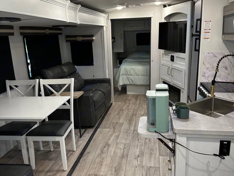 - for off grid stays- Two gray tanks- One main black tankThis is a dream for travel! With all the bells and whistles. This trailer is perfect for your ultimate road trip!What's includedOutdoor:- Mini Fridge- Gas Griddle