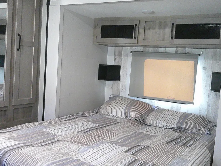 This unit is perfect for Temporary housing for insurance claims, Talladega, Rock The South, Bonnaroo, Rock the Country, Alabama A&M Homecoming, Monte Sano, Lake Wheeler, Tims Ford, Lake Guntersville, Loretta Lynns Ranch, AMA Motocross, Nashville, CMA Awards, Imagine Festival, Car Shows, Sharon Johnston Park, Atlanta Motor Speedway, Beach Vacations, Traveling out west, Yellowstone, Solar eclipse rentals, John Hunt Park, King of the Hill, Drag Races, Blues Festivals, Multi Day music festivals, Fairs, Rodeos, Family reunions, Camping, Tailgating Football Games and so much more! Are you ready to hit the open road and explore the great outdoors?Step inside and be blown away by the spacious and comfortable living area. The RV is stocked with plush seating, a flat-screen TV, and a dining table perfect for dining or playing games with family and friends. The kitchen is fully equipped with all the conveniences of home, including a refrigerator, microwave, stove, and oven.After a long day of exploring, retreat to the master bedroom where a comfortable Queen-Size bed awaits you. The unit also features 1 full size conversion couch, 4 bunks, and conversion dinette providing plenty of sleeping space for up to 8 people.