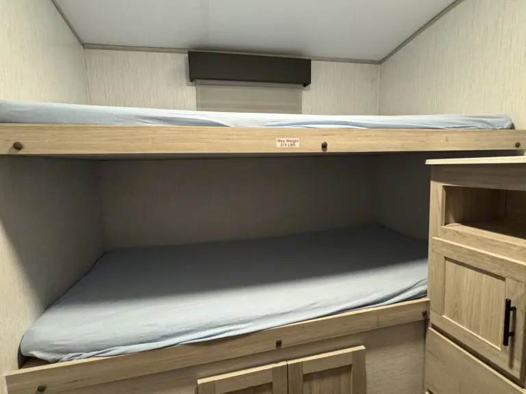• Bathroom with showerThis trailer comes loaded and ready for you to enjoy your trip, with pots and pans, cooking utensils, trailer-safe septic toilet paper, bedding and kitchen towels.Whether you’re planning a weekend trip or a longer adventure, this bunkhouse has everything you need to relax and enjoy the journey.