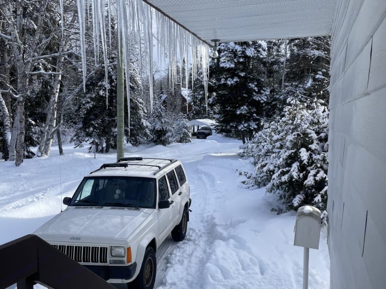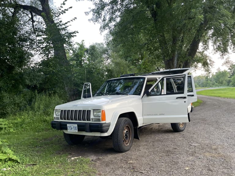 Meet Birch. She's a 1996 Jeep Classic with a V6 engine, 5.2L, and 4x4. She comes with a roof rack and straps, She's kitted out with everything you could need to go camping comfortably. She's simple but has all the power that you need to go as back country as you could possibly want.