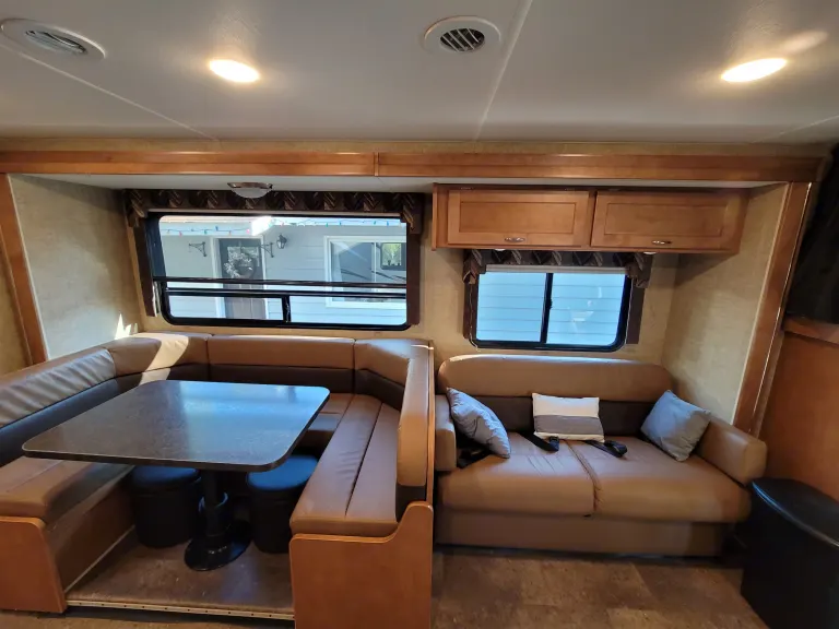 Very clean low mile Class C RV. Perfect for a family or group. This beautiful RV will keep you comfortable in the harshest of conditions. With the outdoor awning you can sit outdoors in comfort during an weather (minus wind). The multiple options for beds will leave anybody comfortable, even the guy you weren't sure about bringing. The master suite gives just enough privacy from the rest of the group but still reminds you that you're in an RV. Overall with proper planning your bound to have a great time.What's includedRental includes a solo stove w/ wood, miniature propane weber grill, large rug a few outdoor and indoor games, pots and pans, silverware etc.Other things to noteTanks must be emptied prior to returning. Will be given with a full gas tank and returned with a full