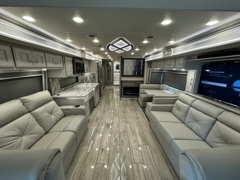 One way rentals available, we will fly to your destination to pick up the RV.Deliveries and pick up available.This unit can help support production sets and other types of events.Provisions available, can be stocked with your list of food and supplies.Pets must be approved on case by case basis, no exceptions. Pet deposit maybe required.****If you are taking this RV on the road you must have proof of large vehicle driving experience within the last 24 months otherwise this unit is delivery only. Must be able to pass driver’s test during pick up. If the drivers test is failed and you do not wish to rent a smaller RV, 25% of the reservation total is non refundable for time loss, rental loss etc. Please do not rent this RV if you genuinely have no experience driving large vehicles. This RV weighs close to 40,000 lbs dry, responsibility is extremely high and experience is a must. *****Sleeping Space: King size bed, U shaped Dinette, pull out couch, overact bunk.