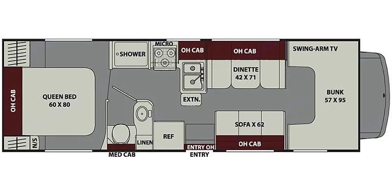 We chose this 30ft RV and found it to be more comfortable than a 25ft. Easy to move around in for 3 adults. Fridge/Freezer kept things ice cold. All amenities worked properly, awning gave plenty of shade. Easy to drive and park. Eric was very helpful with instructions on all equipment and made our pick up and returns times convenient. We would still need something bigger if we took our whole family of 5. This trip was great!