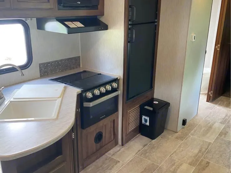 This spacious travel trailer is perfect for family getaways or trips with friends. Featuring: