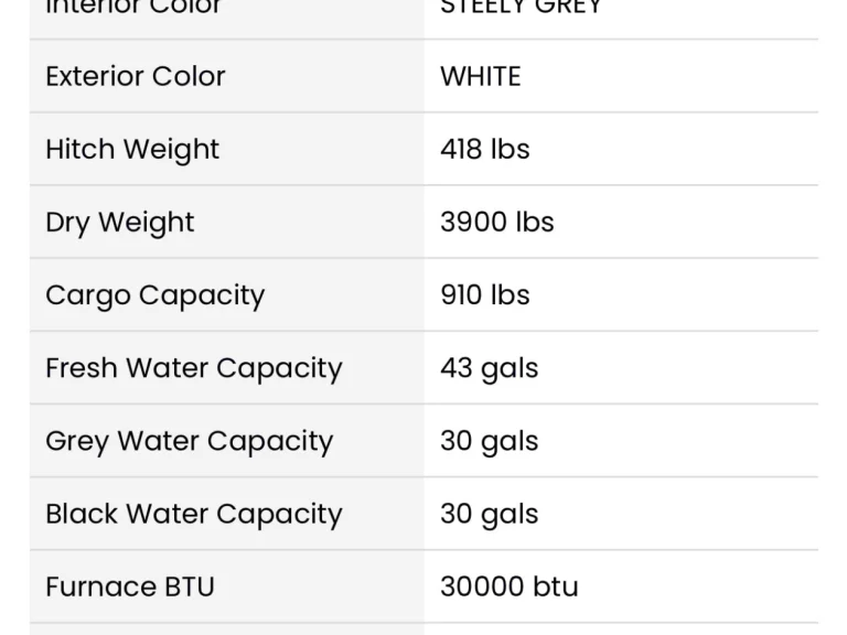 - Hitch weight: 418 lbs
