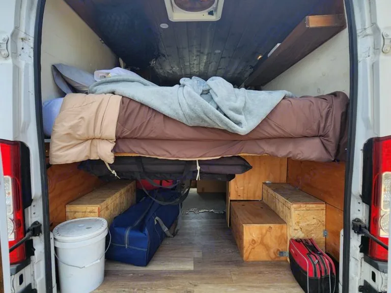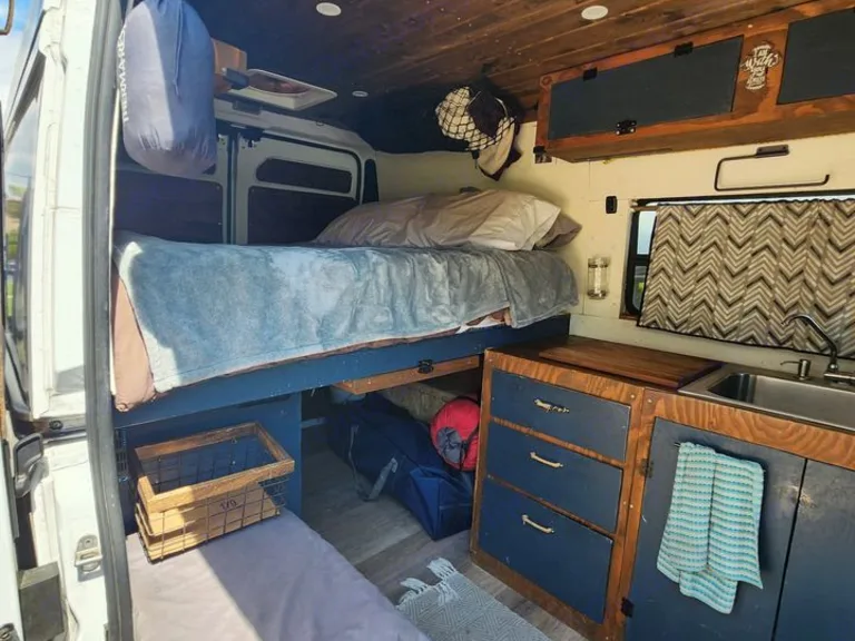 This campervan was custom built with love for the simple life. Perfect for those who enjoy camping, boondocking, and getting back to their roots. With all-terrain tires and solar, it is perfect for getting lost. We've been to several remote locations with this rig, and we encourage you do to the same! The van's sneaky design and privacy curtains are also perfect for staying in the city. We should know, as we lived in this van in the city for several months! Take our van wherever your heart desires! And if you want some tips/tricks for boondocking or a stay in the city, let us know! We've got a bunch!The simple design of this campervan means there is no shower or restroom (although there is an emergency bucket toilet just in case). If you choose to stay in the city for your adventure, we are happy to assist with great public restroom and shower spots in San Diego.What's includedThe van is equipped with:
