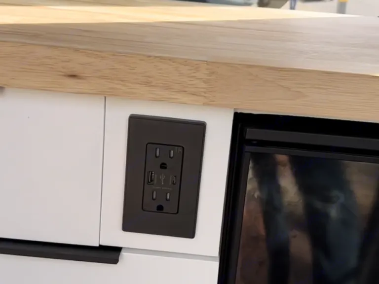 -110v 3-prong outlets (works with computer chargers, basic appliances including microwave etc)