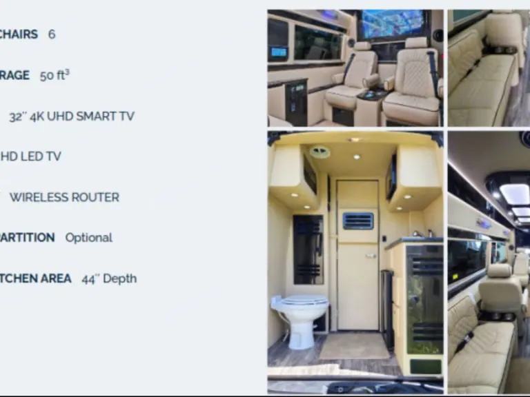 Luxurious VIP Van with Wifi can seat 10 adults and sleep 2 adults comfortably.Includes: