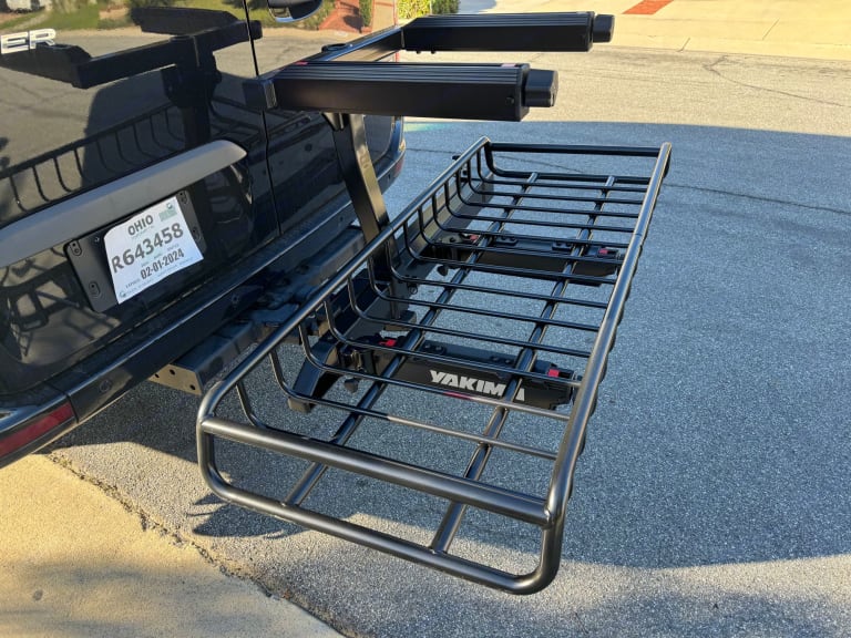 Double decker external cargo storage attached to hitch