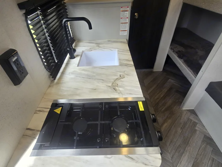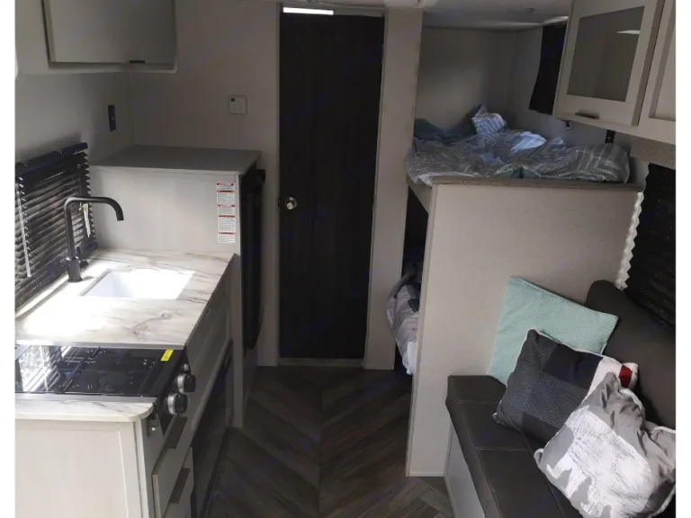 Coonhound RV Rentals proudly presents the 2023 Forest River Salem 174Bhle. This compact yet spacious trailer is perfect for your next adventure, offering comfort and convenience for up to five people.The 2023 Forest River Salem 174Bhle features a cozy queen-sized bed, two bunk beds, and a small dinette with a folding table. Equipped with both air conditioning and heating, this trailer ensures a comfortable environment in any season.The kitchen includes a 2-burner gas stove, microwave, refrigerator, and a deep sink, making meal preparation a breeze. The bathroom comes with a shower and toilet, providing all the essentials for your trip.For your entertainment, the trailer has a Bluetooth-capable audio system with indoor and outdoor speakers.Additional features include ample storage space, stabilizer jacks for easy setup, and lightweight construction for easy towing. Please note that linens and towels are not provided, so be sure to bring your own. It's also important to bring RV-specific toilet paper to avoid clogging the septic system.Embark on your next journey with the 2023 Forest River Salem 174Bhle from Coonhound RV Rentals and create unforgettable memories!
